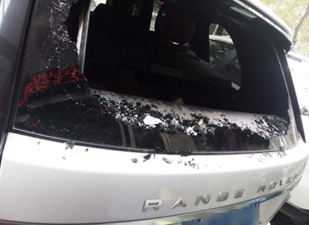 被盗汽车后窗全部被砸毁