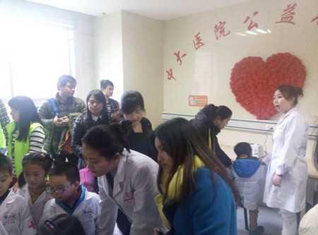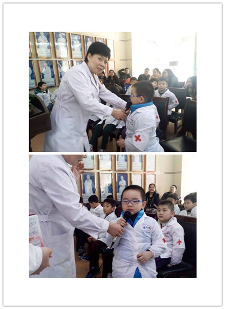 讲课结束后,所有儿童每5人分成一组,由医护人员带领,分别进入各科室进行“小小医生”职业体验。