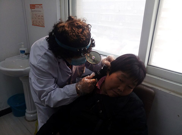 程元春副主任正在为聋人朋友检查