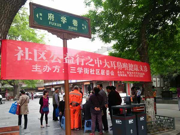 为进一步普及健康知识,帮助居民养成健康文明的生活方式,同时解决看病难的现状。4月13日上午,应西安市三学街社区委员会邀请,西安新城中大耳鼻喉医院医护人员前往碑林区三学街府学巷社区开展“健康义诊进社区”服务活动,活动受到了社区居民的大力支持和热烈欢迎。